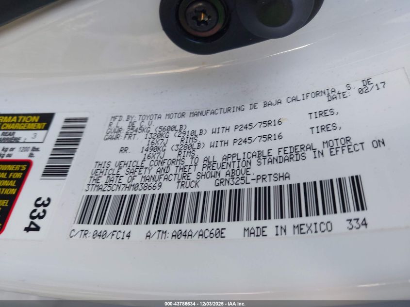 2017 TOYOTA TACOMA 2017 року Бензин, 3.5, , vin - 3TMAZ5CN7HM038669 из США