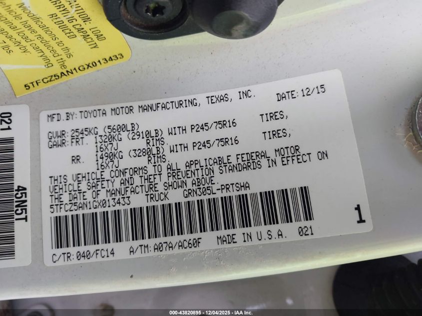 2016 TOYOTA TACOMA 2016 року Бензин, 3.5, Полный привод, vin - 5TFCZ5AN1GX013433 из США