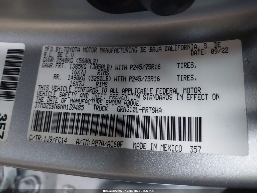 2022 TOYOTA TACOMA 2022 року Бензин, 3.5, Полный привод, vin - 3TMDZ5BN6NM139485 из США