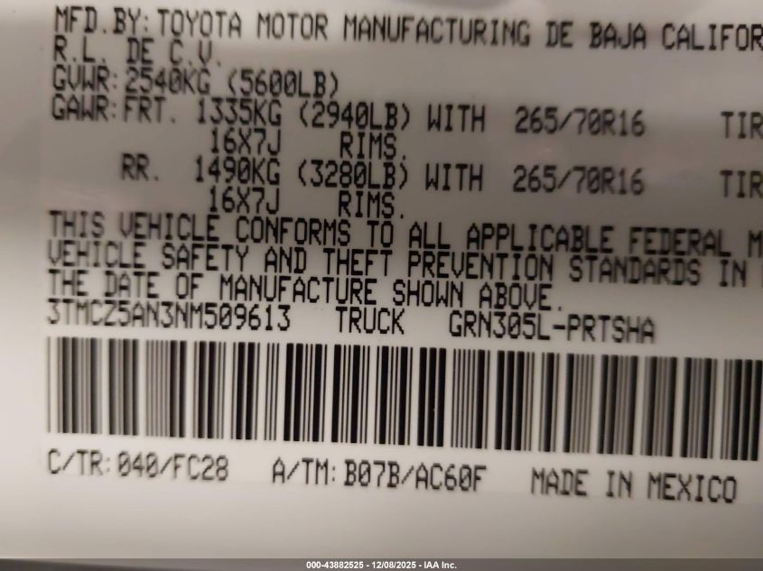 2022 TOYOTA TACOMA 2022 року Бензин, 3.5, Полный привод, vin - 3TMCZ5AN3NM509613 из США