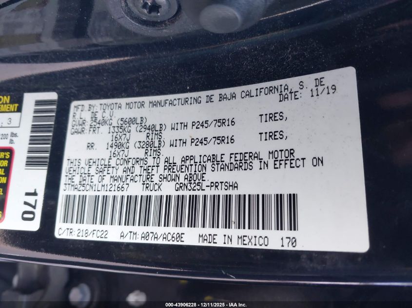 2020 TOYOTA TACOMA 2020 року Бензин, 3.5, , vin - 3TMAZ5CN1LM121667 из США