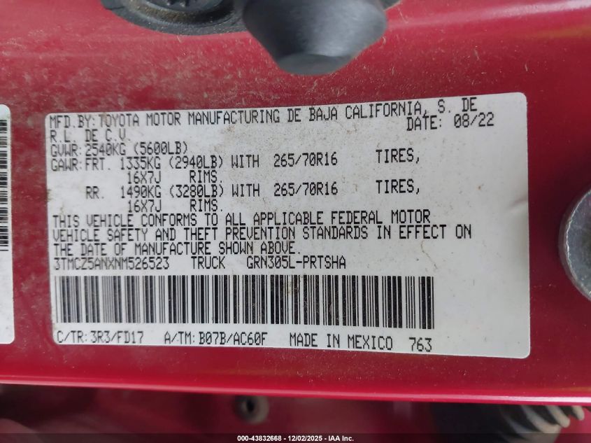 2022 TOYOTA TACOMA 2022 року Бензин, 3.5, Полный привод, vin - 3TMCZ5ANXNM526523 из США