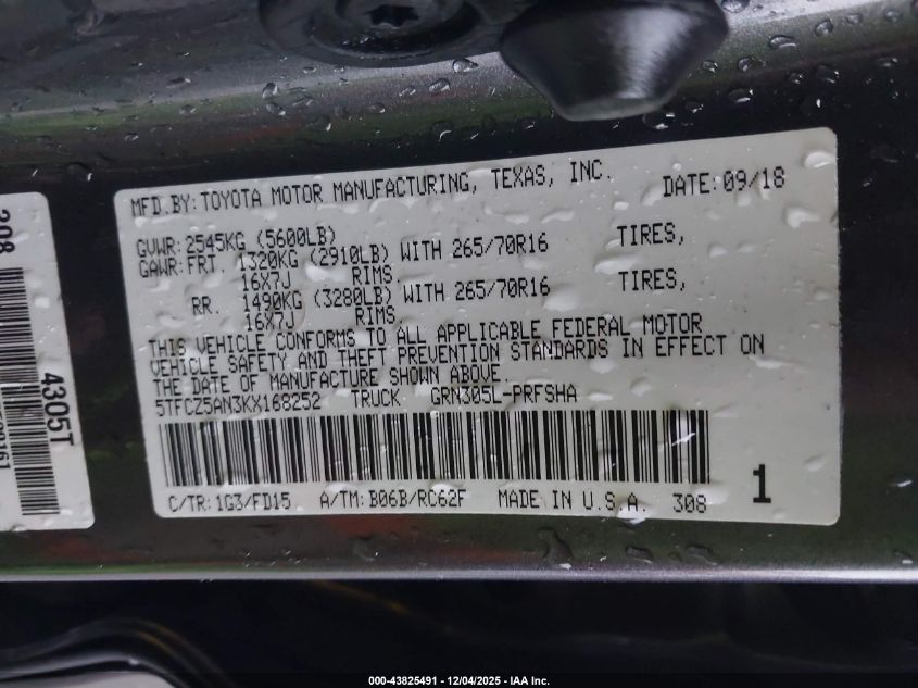 2019 TOYOTA TACOMA 2019 року Бензин, 3.5, Полный привод, vin - 5TFCZ5AN3KX168252 из США