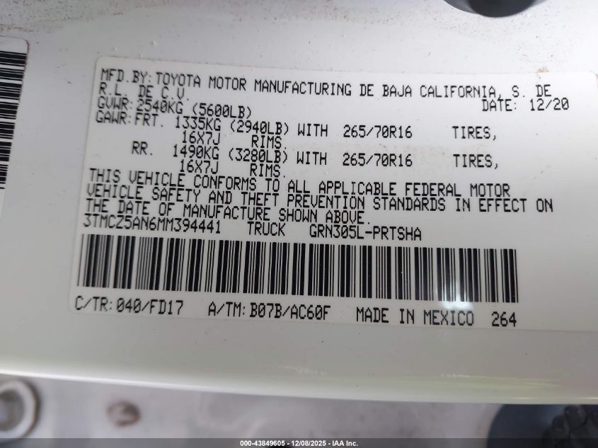 2021 TOYOTA TACOMA ACCESS CAB
