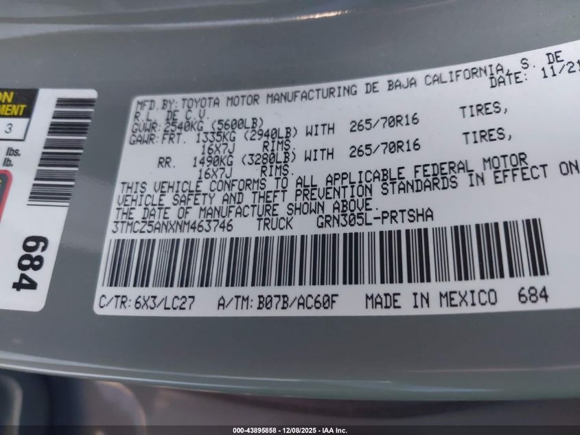 2022 TOYOTA TACOMA 2022 року Бензин, 3.5, Полный привод, vin - 3TMCZ5ANXNM463746 из США