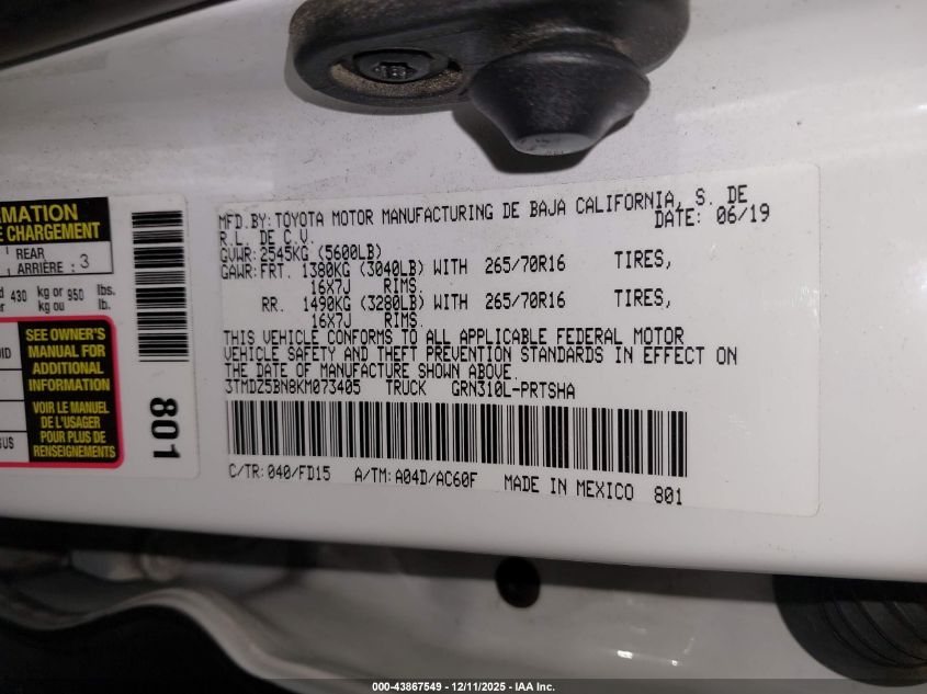 2019 TOYOTA TACOMA ACCESS CAB