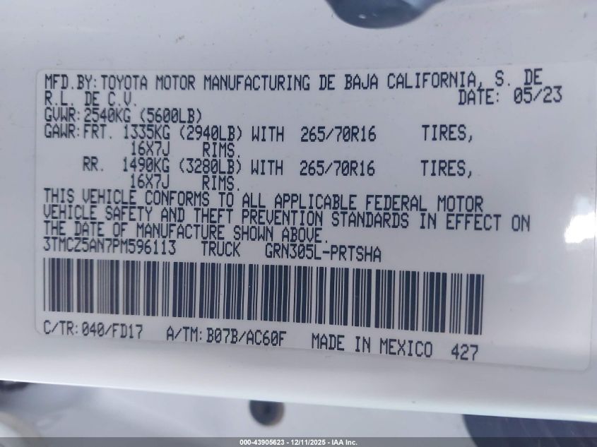 2023 TOYOTA TACOMA 2023 року Бензин, 3.5, Полный привод, vin - 3TMCZ5AN7PM596113 из США