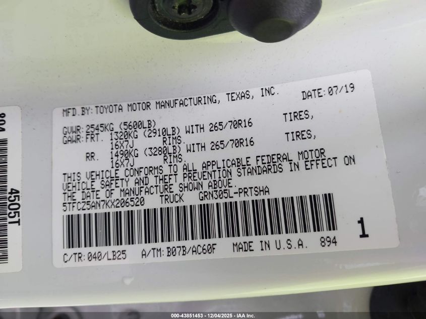 2019 TOYOTA TACOMA ACCESS CAB