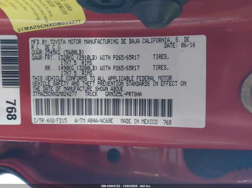 2016 TOYOTA TACOMA 2016 року Бензин, 3.5, , vin - 3TMAZ5CNXGM024277 из США