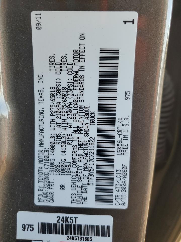 2012 TOYOTA TUNDRA 2012 року Бензин, 5.7, 4x4 с задним приводом, vin - 5TFBY5F17CX211822 из США