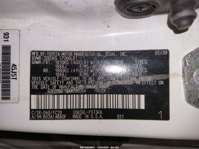 2010 TOYOTA TUNDRA 2010 року Бензин, 5.7, Полный привод, vin - 5TFDY5F19AX096064 из США
