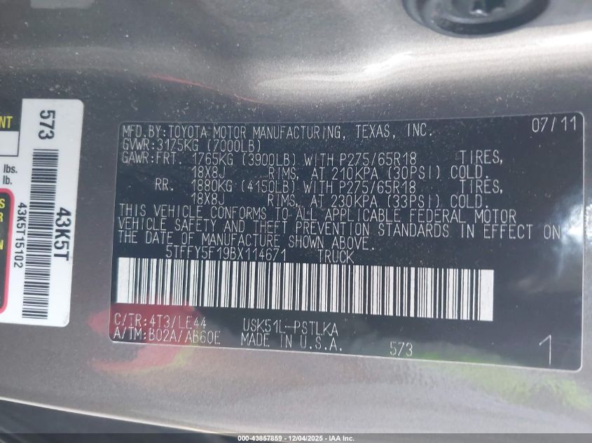 2011 TOYOTA TUNDRA 2011 року Бензин, 5.7, , vin - 5TFFY5F19BX114671 из США