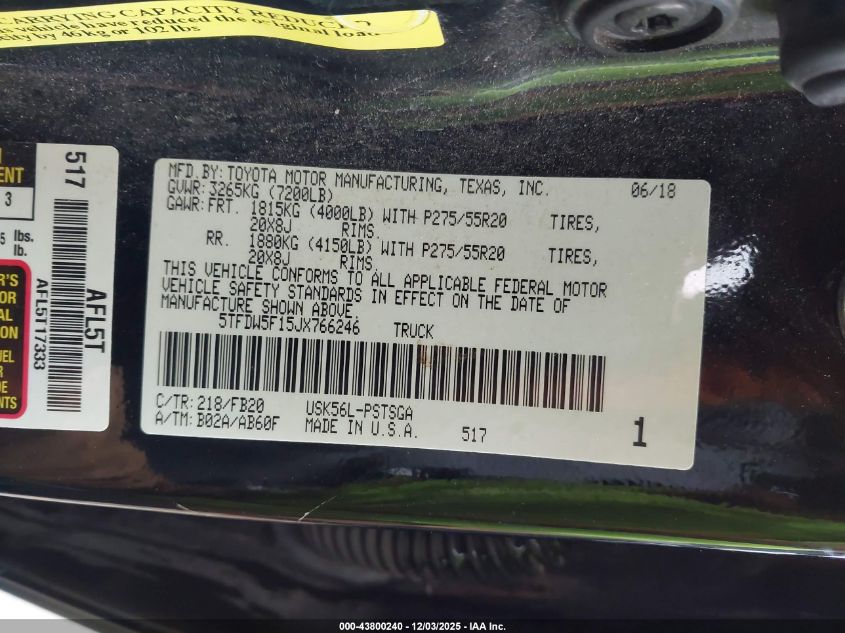 2018 TOYOTA TUNDRA 2018 року Бензин, 5.7, Полный привод, vin - 5TFDW5F15JX766246 из США