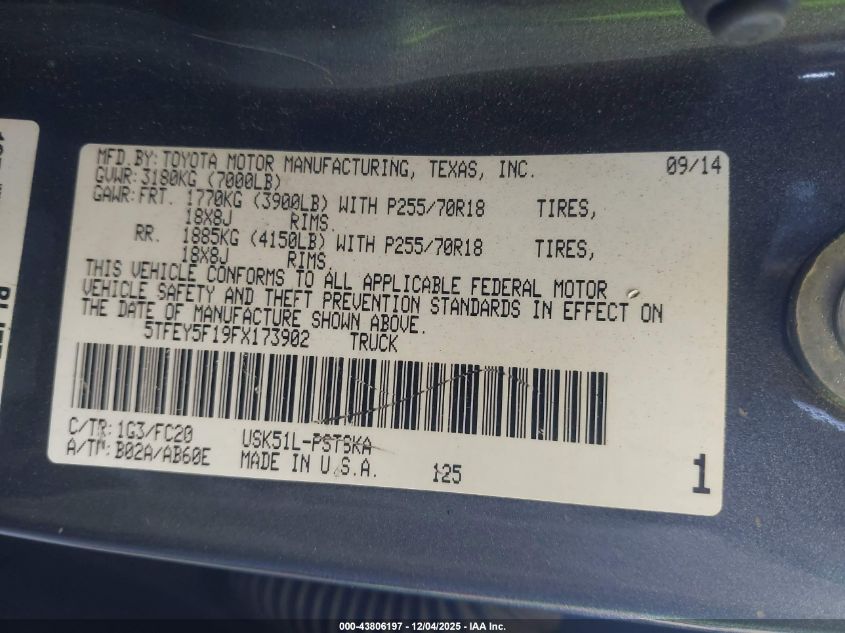 2015 TOYOTA TUNDRA 2015 року Бензин, 5.7, , vin - 5TFEY5F19FX173902 из США