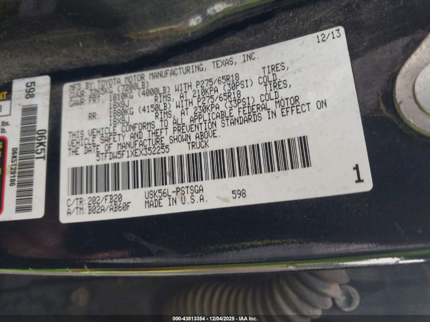 2014 TOYOTA TUNDRA 2014 року Бензин, 5.7, Полный привод, vin - 5TFDW5F1XEX352255 из США