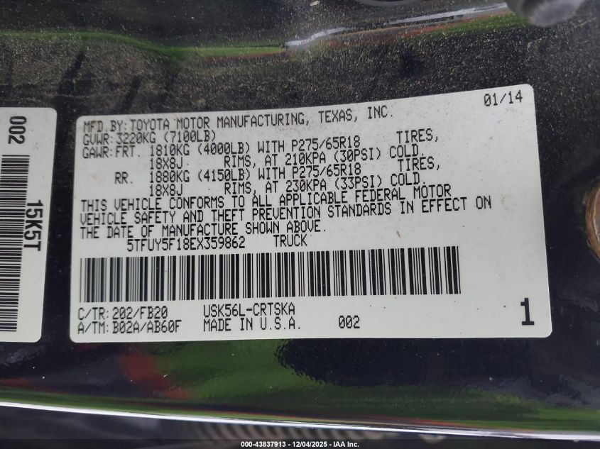 2014 TOYOTA TUNDRA 2014 року Бензин, 5.7, Полный привод, vin - 5TFUY5F18EX359862 из США