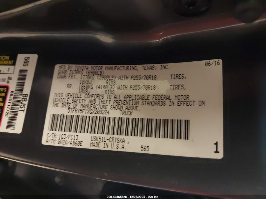 2016 TOYOTA TUNDRA 2016 року Бензин, 5.7, , vin - 5TFRY5F1XGX208224 из США