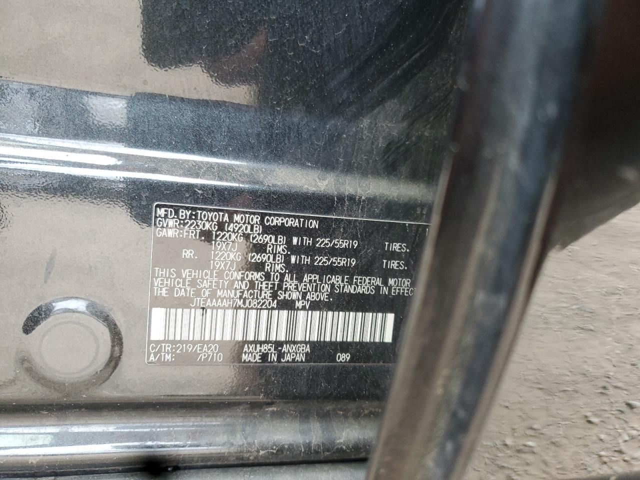 2021 TOYOTA VENZA 2021 року Гибрид, 2.5, Полный привод, vin - JTEAAAAH7MJ082204 из США