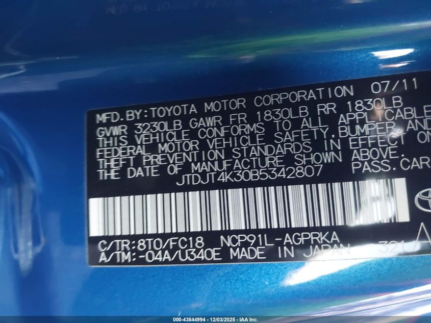 Цвет СинийЦилиндры 4Привод Передний приводVIN JTDJT4K30B5342807Состояние СтационарноПовреждения Передняя или задняя AutoRIA