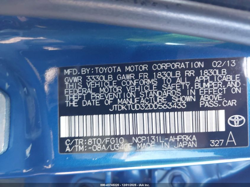 Цвет СинийЦилиндры 4Привод Передний приводVIN JTDKTUD32DD563433Состояние Заводится и едет (проверено)Повреждения Левая сторонаДата аукциона 2025-12-11 AutoRIA