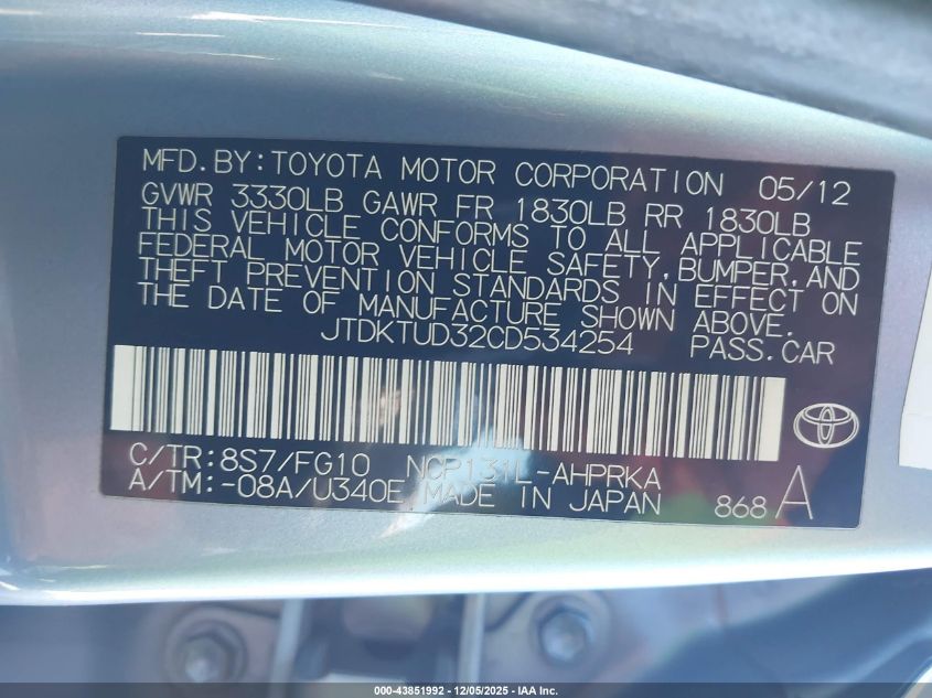 Цвет СинийЦилиндры 4Привод Передний приводVIN JTDKTUD32CD534254Состояние Заводится и едет (проверено)Повреждения Правая сторона AutoRIA