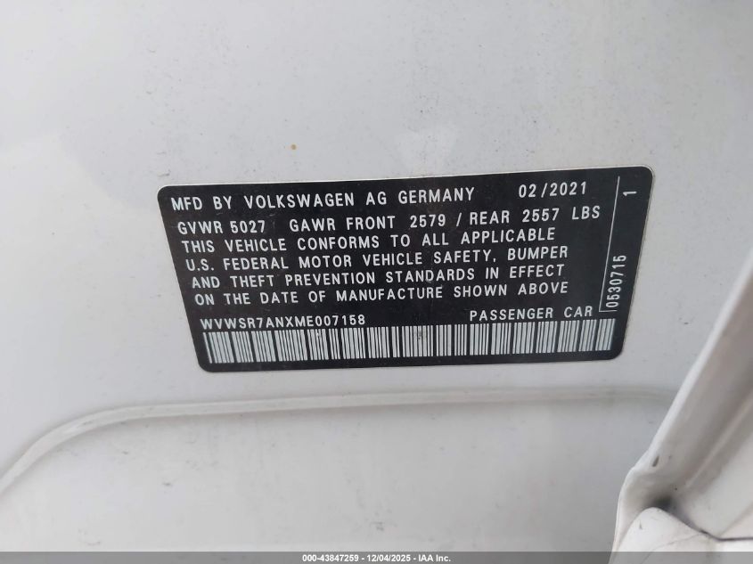 2021 VOLKSWAGEN ARTEON 2021 року Бензин, 2.0, Полный привод, vin - WVWSR7ANXME007158 из США