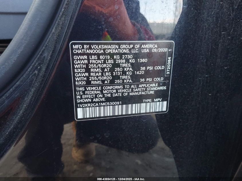 2021 VOLKSWAGEN ATLAS 2021 року Бензин, 3.6, Полный привод, vin - 1V2KR2CA1MC530091 из США