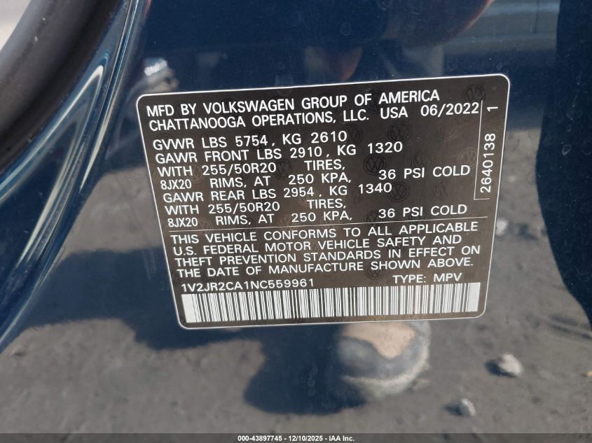 2022 VOLKSWAGEN ATLAS SE