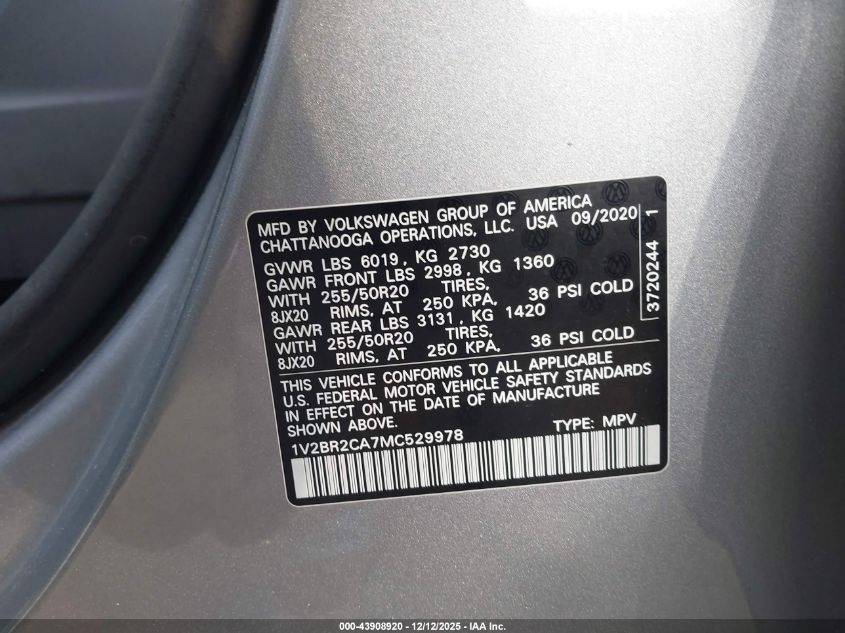 2021 VOLKSWAGEN ATLAS 2021 року Бензин, 3.6, Полный привод, vin - 1V2BR2CA7MC529978 из США