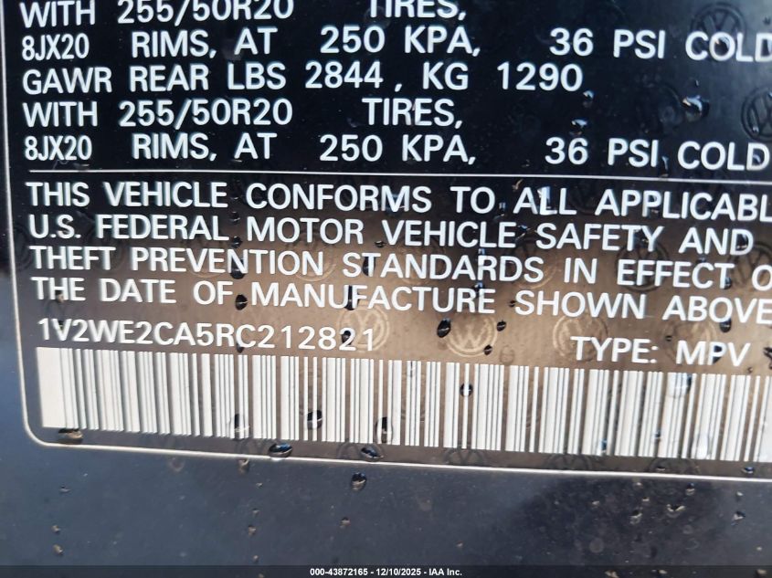 2024 VOLKSWAGEN ATLAS CROSS SPORT 2024 року Бензин, 2.0, Передний привод, vin - 1V2WE2CA5RC212821 из США