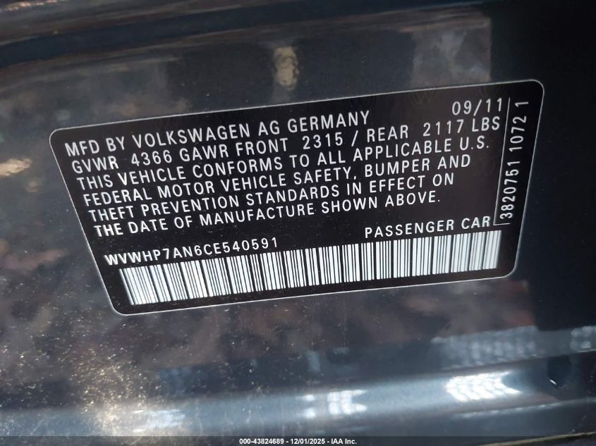 2012 VOLKSWAGEN CC 2012 року Бензин, 2.0, Передний привод, vin - WVWHP7AN6CE540591 из США