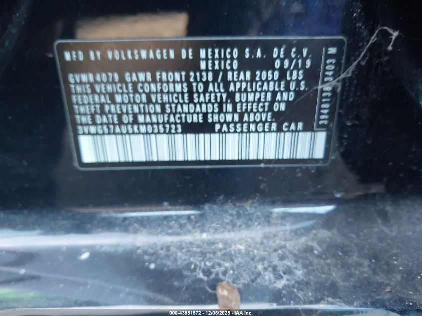 2019 VOLKSWAGEN GOLF 2019 року Бензин, 1.4, Передний привод, vin - 3VWG57AU5KM035723 из США