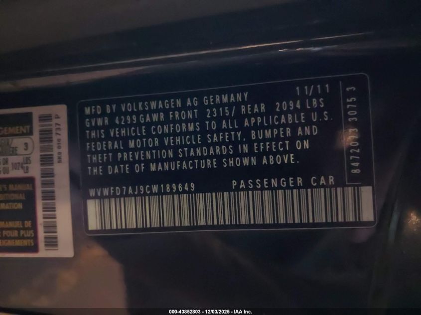 2012 VOLKSWAGEN GOLF GTI 2012 року Бензин, 2.0, Передний привод, vin - WVWFD7AJ9CW189649 из США