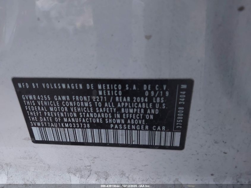 2019 VOLKSWAGEN GOLF GTI 2019 року Бензин, 2.0, Передний привод, vin - 3VW5T7AU1KM033738 из США