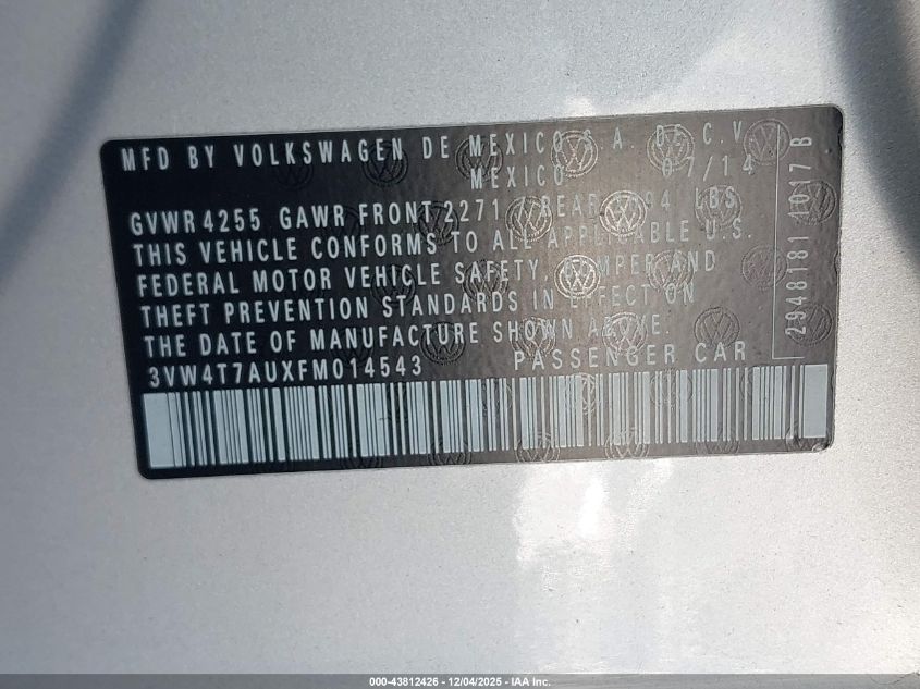 2015 VOLKSWAGEN GOLF GTI 2015 року Бензин, 2.0, Передний привод, vin - 3VW4T7AUXFM014543 из США