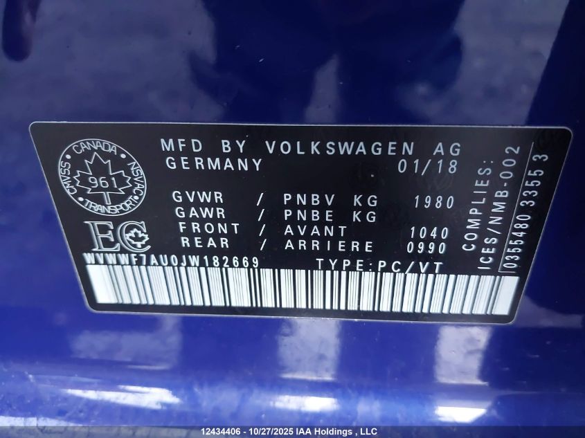 Цвет СинийЦилиндры 4Привод Полный приводVIN WVWWF7AU0JW182669Состояние СтационарноПовреждения НезначительныеДата аукциона 2025-12-11 AutoRIA