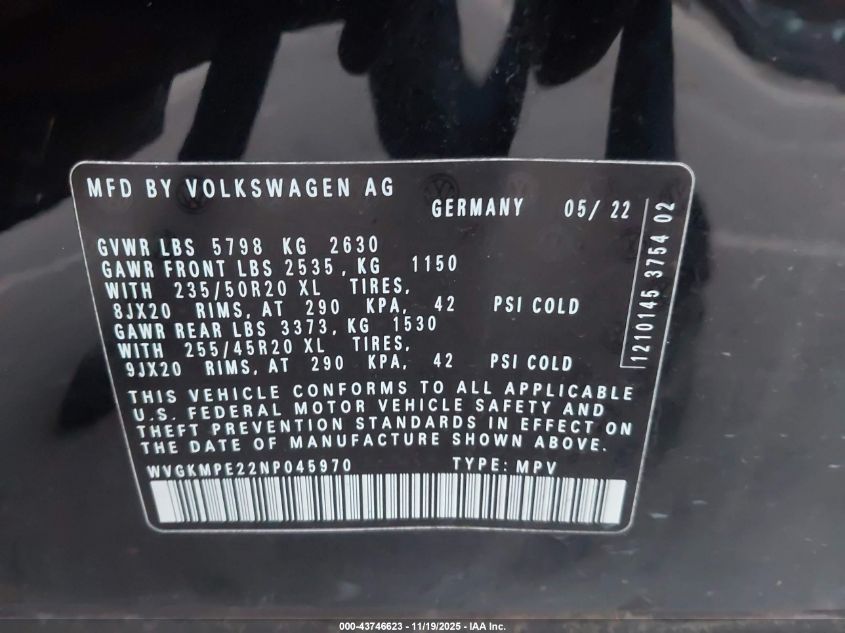 2022 VOLKSWAGEN ID.4 2022 року Электрический, 0.0, , vin - WVGKMPE22NP045970 из США