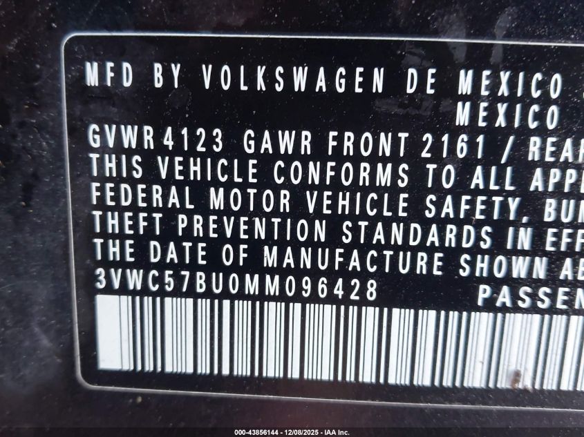 2021 VOLKSWAGEN JETTA 2021 року Бензин, 1.4, Передний привод, vin - 3VWC57BU0MM096428 из США