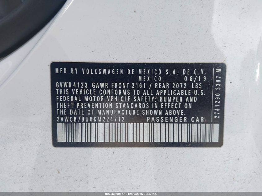 2019 VOLKSWAGEN JETTA 2019 року Бензин, 1.4, Передний привод, vin - 3VWCB7BU6KM224712 из США