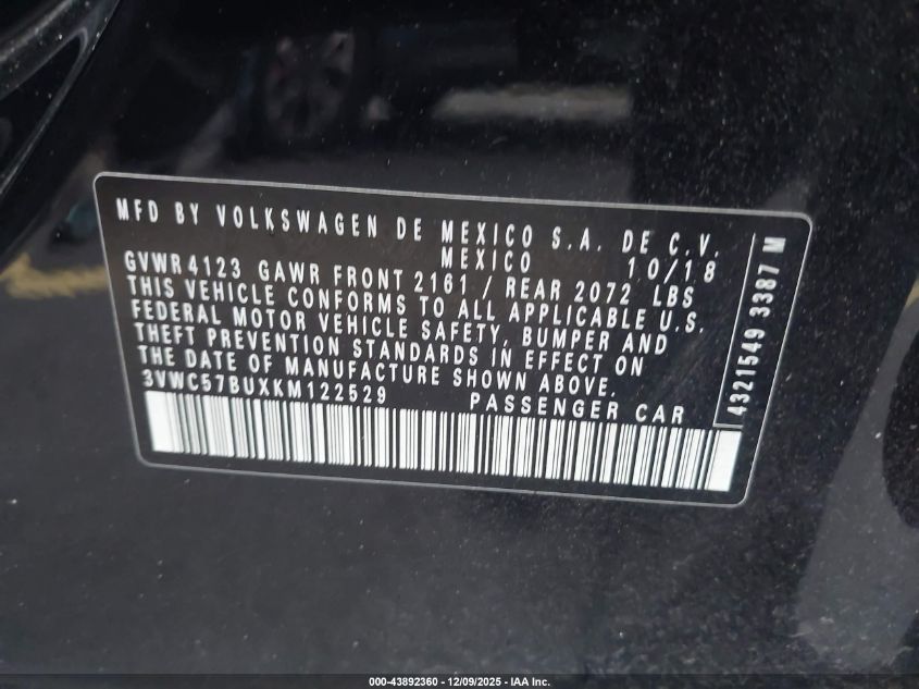 2019 VOLKSWAGEN JETTA 2019 року Бензин, 1.4, Передний привод, vin - 3VWC57BUXKM122529 из США
