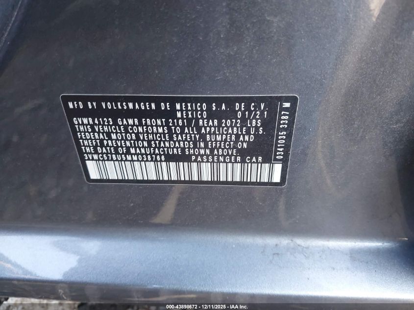 2021 VOLKSWAGEN JETTA 2021 року Бензин, 1.4, Передний привод, vin - 3VWC57BU5MM038766 из США