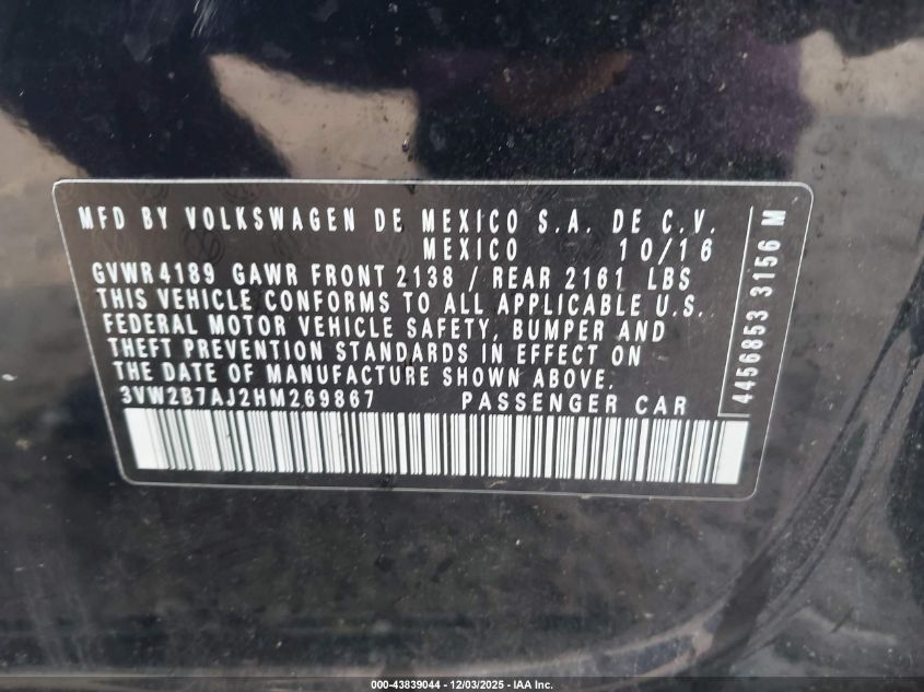 2017 VOLKSWAGEN JETTA 2017 року Бензин, 1.4, Передний привод, vin - 3VW2B7AJ2HM269867 из США