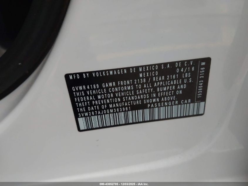 2016 VOLKSWAGEN JETTA 2016 року Бензин, 1.4, Передний привод, vin - 3VW267AJ0GM363961 из США