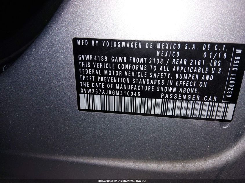 2016 VOLKSWAGEN JETTA 2016 року Бензин, 1.4, Передний привод, vin - 3VW267AJ9GM310045 из США