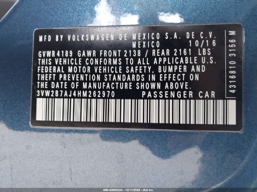 2017 VOLKSWAGEN JETTA 2017 року Бензин, 1.4, Передний привод, vin - 3VW2B7AJ4HM262970 из США