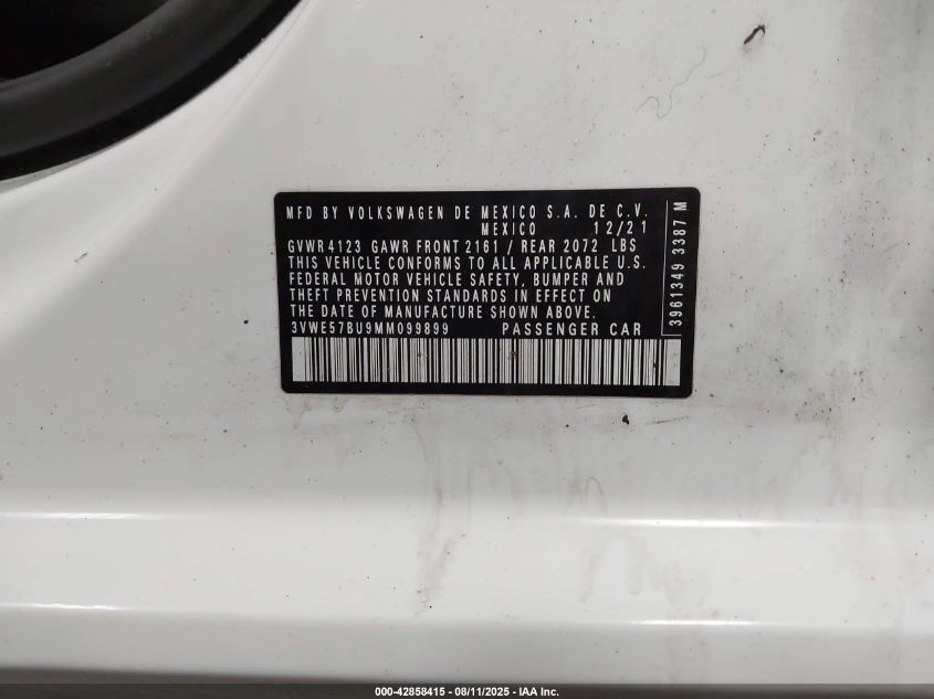 2021 VOLKSWAGEN JETTA 2021 року Бензин, 1.4, Передний привод, vin - 3VWE57BU9MM099899 из США
