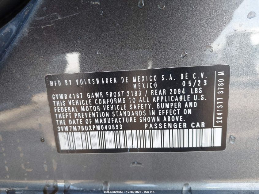2023 VOLKSWAGEN JETTA 2023 року Бензин, 1.5, Передний привод, vin - 3VW7M7BUXPM040893 из США