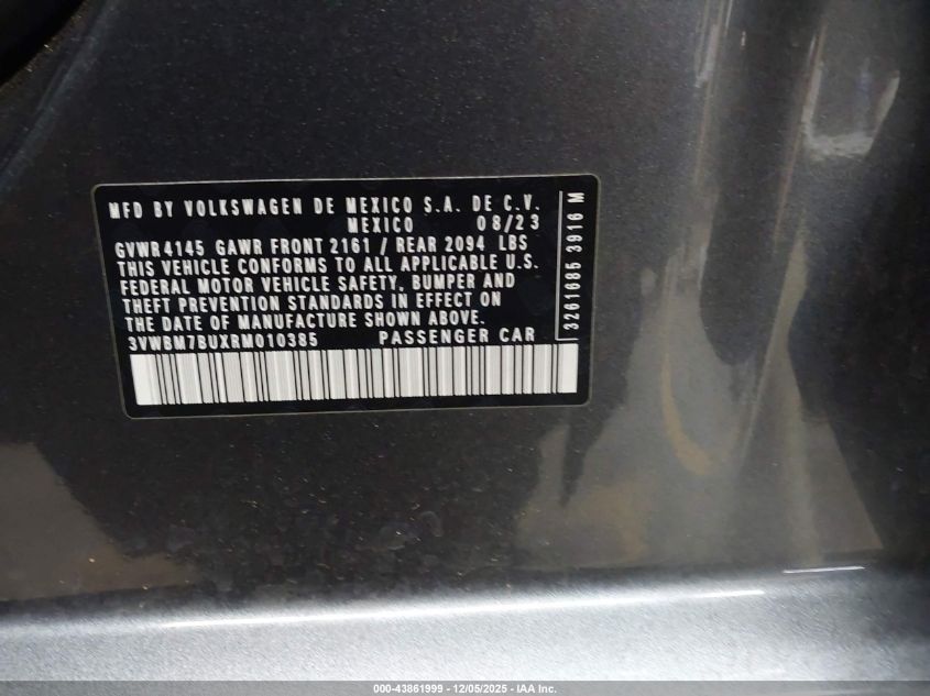2024 VOLKSWAGEN JETTA 2024 року Бензин, 1.5, Передний привод, vin - 3VWBM7BUXRM010385 из США