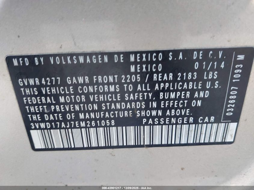 2014 VOLKSWAGEN JETTA 2014 року Бензин, 1.8, Передний привод, vin - 3VWD17AJ7EM261058 из США