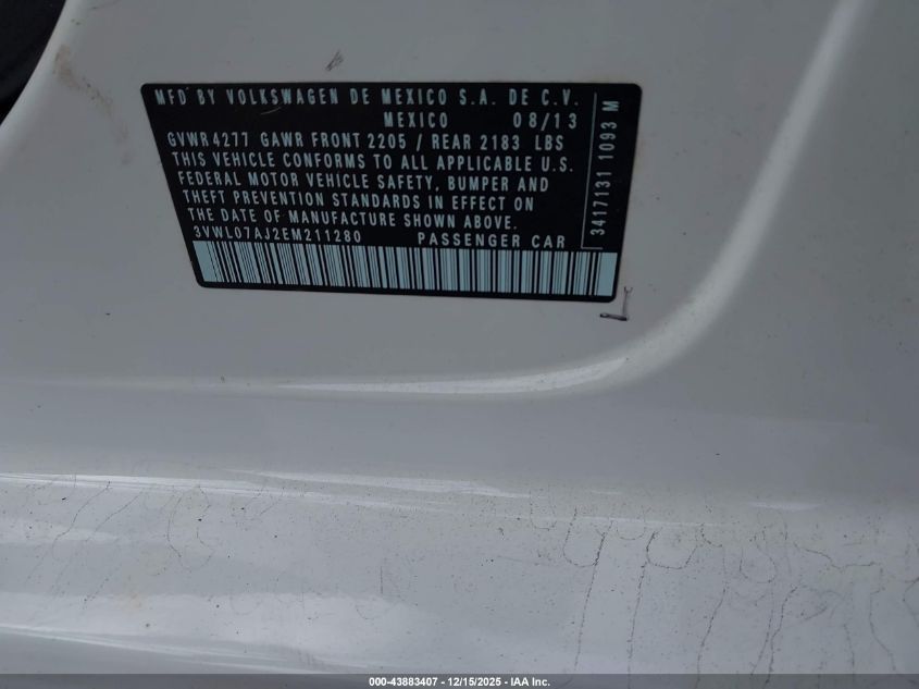 2014 VOLKSWAGEN JETTA 2014 року Бензин, 1.8, Передний привод, vin - 3VWL07AJ2EM211280 из США
